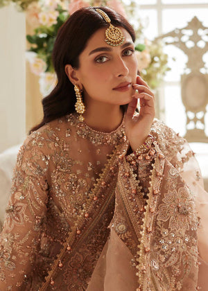 Elan Ariana, as worn by Ayeza Khan, is a stunning formal outfit that embodies luxury and elegance. This ensemble features intricate, hand-crafted embroidery on a rich, opulent fabric, showcasing a harmonious blend of traditional artistry and contemporary design. The intricate details, paired with a regal silhouette, make it a perfect choice for weddings or grand celebrations, exuding a timeless charm and sophisticated allure.